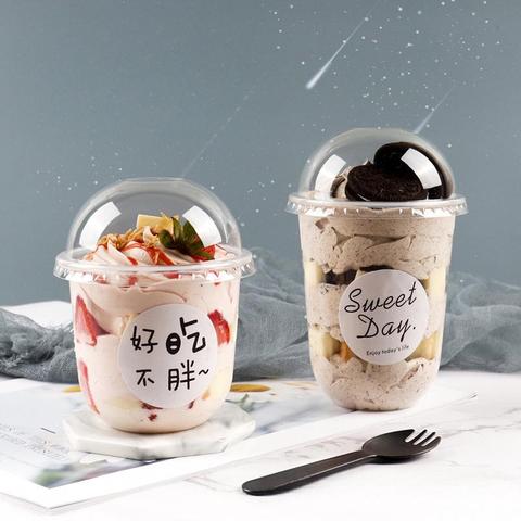 Personalized Disposable Take Away Dessert Coffee Plastic Drink Cup Milk Tea Dome Lid Flat Cover Plastic Cup